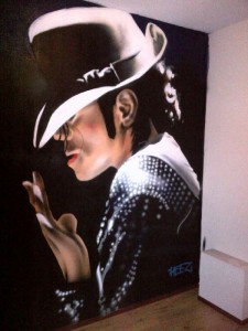 MJ seems to be timeless. The kids, parents and grandparents of this family are all still crazy about the king of pop and asked Peter to make a graffiti of him in one of the rooms of the house.